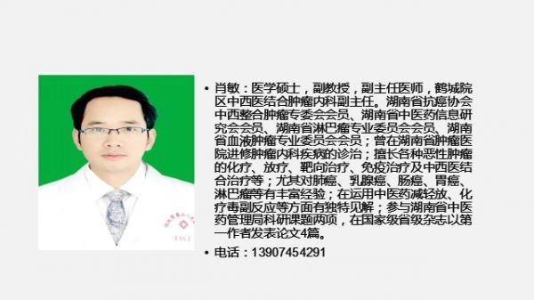 一提到肿瘤,很多人的第一反应是想到死亡、手术切除、放疗、化疗等词汇。随着当代人们的肿瘤发病率不断上升,怎样为肿瘤患者提供更全面、更安全、更有效、治疗副作用更少的防治方法呢?怀化市肿瘤医院中西结合肿瘤科主管护师申飞阳为您解答疑惑。